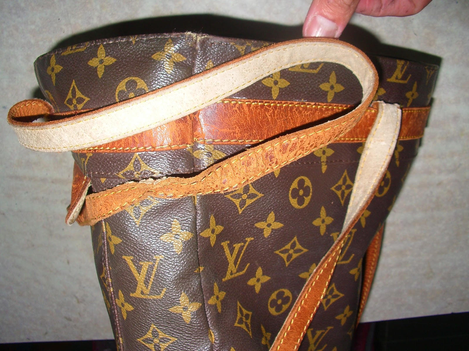 這個皮包揹帶與袋子主體連接處的皮釦皮料已出現斷裂,